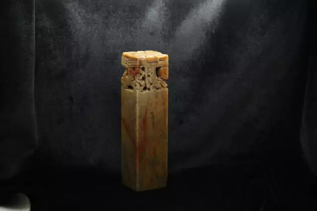钮雕是专指印章上部钮饰的雕刻,属于圆雕的范畴,具有丰富的立体感,但它和圆雕相比,具有三个显著的特点。一是物像小,限于印章的规模,一般都在10立方厘米以下;二是只表现物像的上方,而不像圆雕那样,需要全方位表现;此外,钮雕的表现内容多是动物,特别是古代传说中的动物。